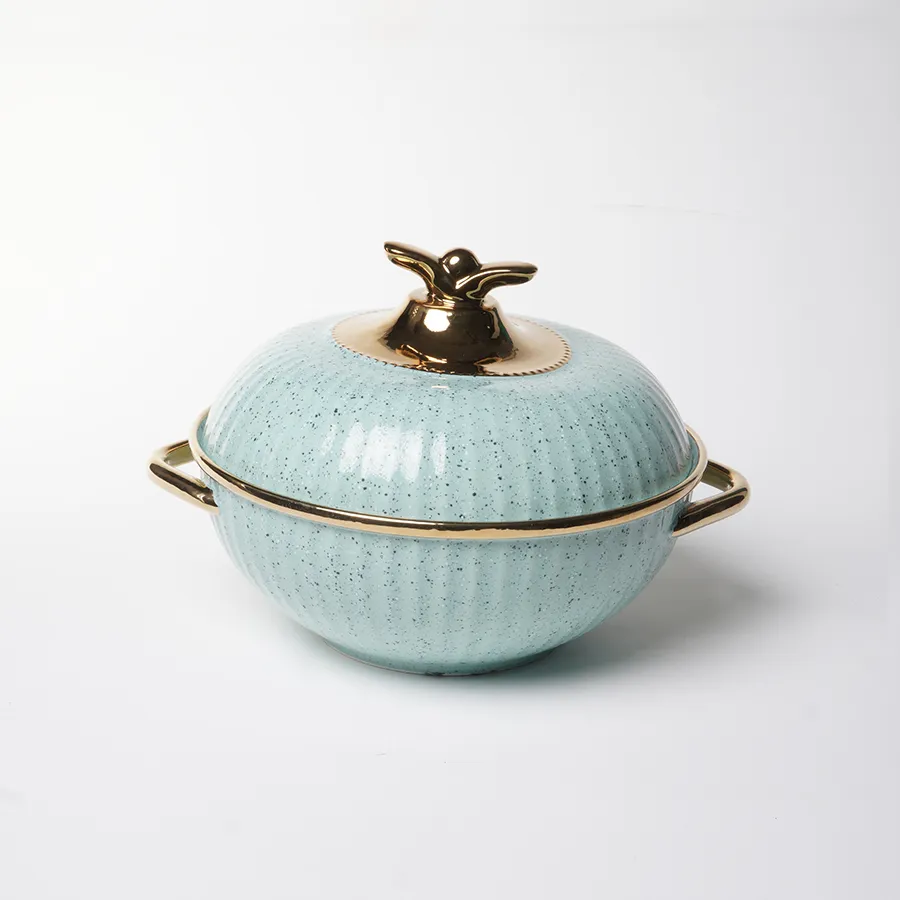 Welcome to purchase our grayish-blue glazed ceramic soup pot wholesale. This grayish-blue glazed ceramic soup pot is popular for its elegant shape and first-class texture. Its wear-resistant, smooth glaze is both beautiful and convenient to clean, and natural mineral firing provides long-term heat resistance and durability. With versatile customization and fast delivery, it’s a great choice for restaurants and high-end dining establishments.