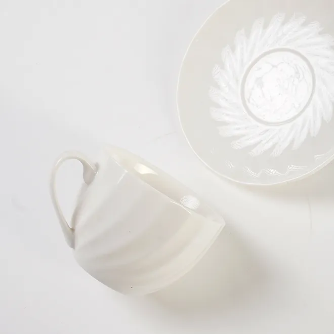 Welcome to purchase our customized tea set. This modern white-glazed ceramic coffee cup and saucer set features double-layer heavy-duty insulation and delicate, transparent craftsmanship. Fired at high temperature, it produces a stain-proof glaze. Intensively customizable in design, printing, color, and packaging, it is user-friendly in various situations, including restaurants, cafes, and business offices.